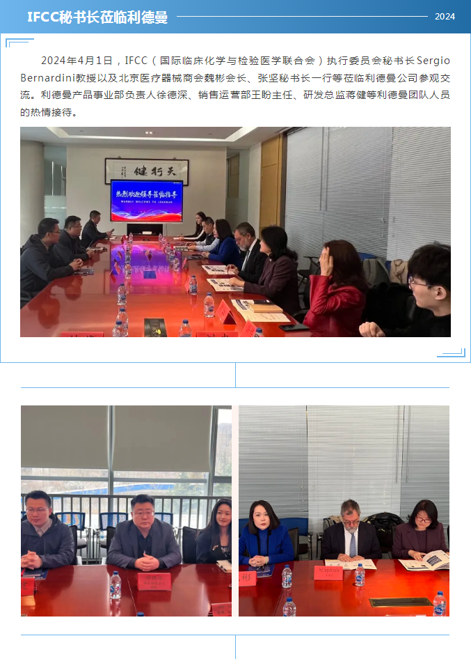 IFCC执行委员会秘书长及北京医疗器械商会 领导莅临vkgame威客电竞(中国)有限公司公司参观交流