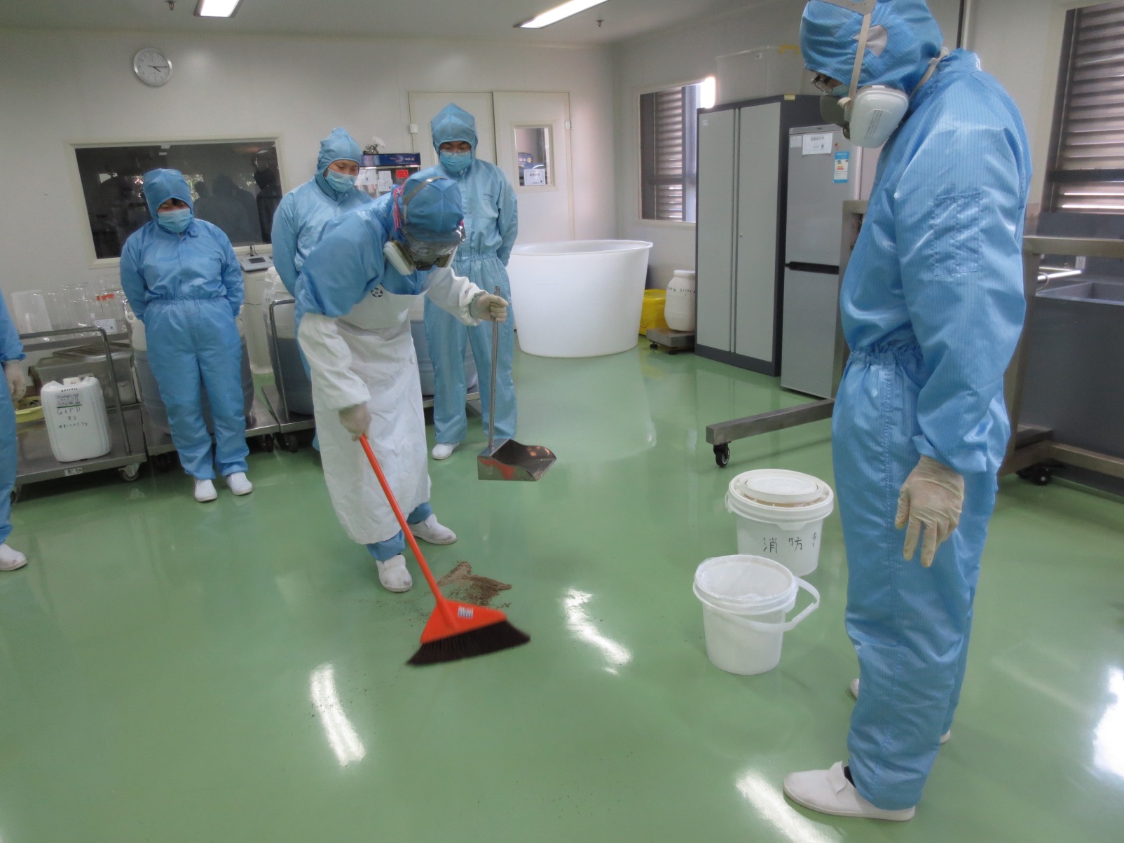 根据《2013年北京经济技术开发区“安全生产月”活动方案》的相关要求及公司年度应急演练计划,vkgame威客电竞(中国)有限公司生产运营中心诊断试剂生产部、研发中心于6月19日、20日下午分在各自生产工作现场组织关于危险化学品洒漏事故处理和酸性液体接触操作者皮肤应急处置的预案演练活动。公司研发中心主任郑长龙、原料研发中心总监熊宁、试剂研发中心总监陈立杰及相关工作人员参加了本次演练活动。